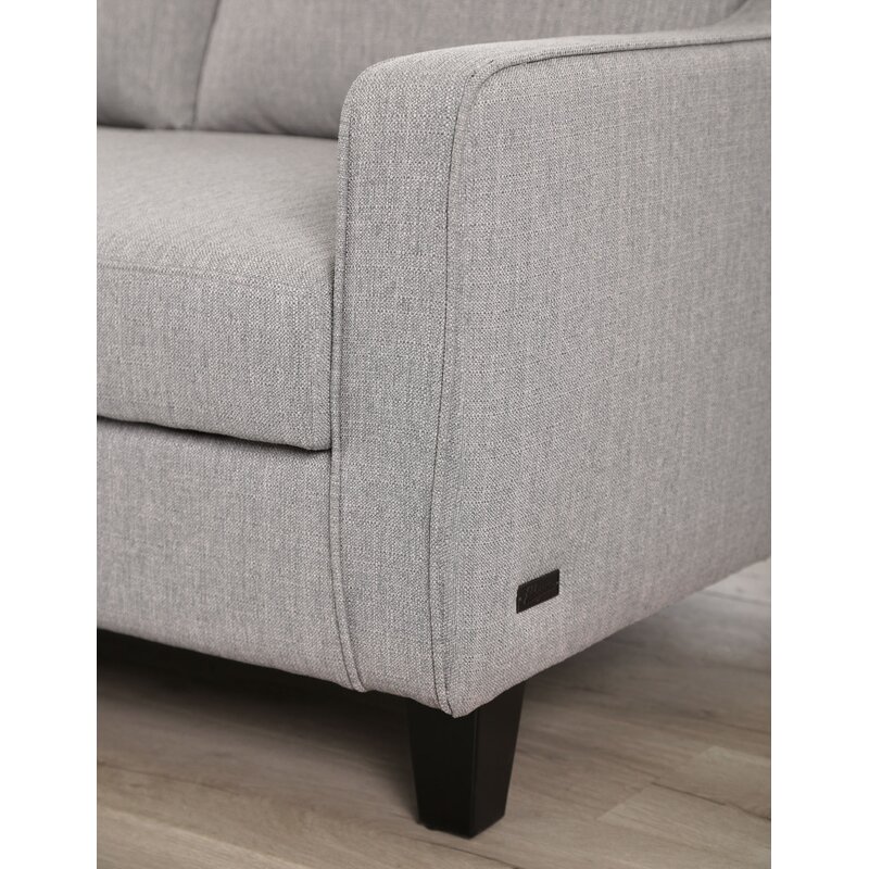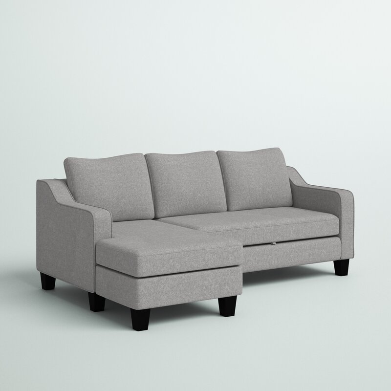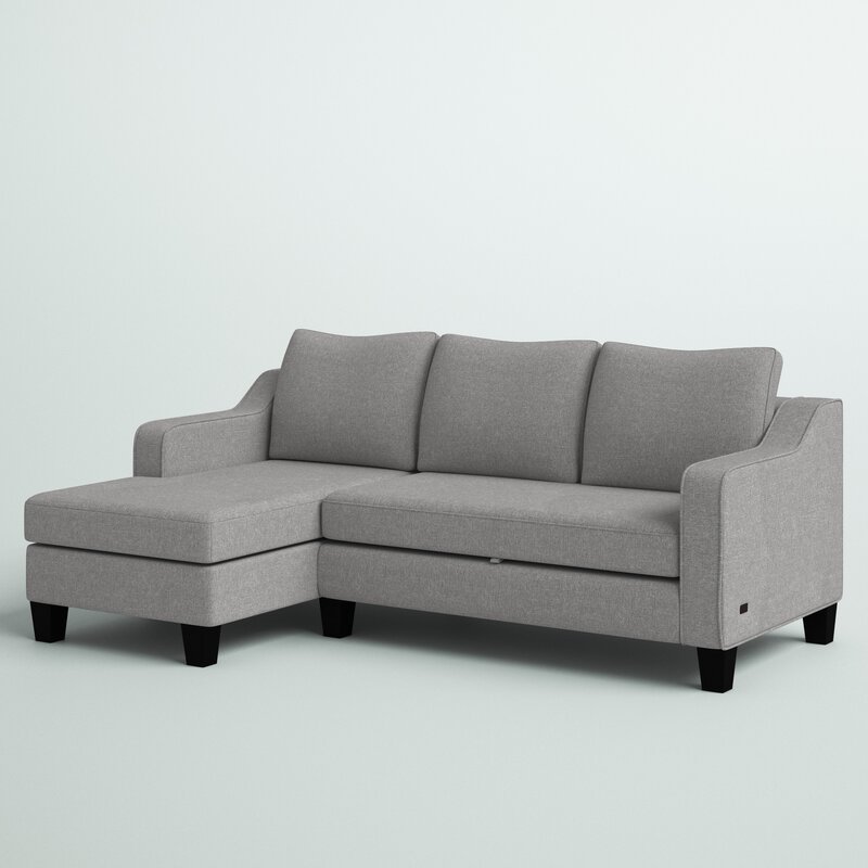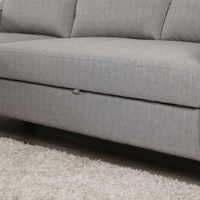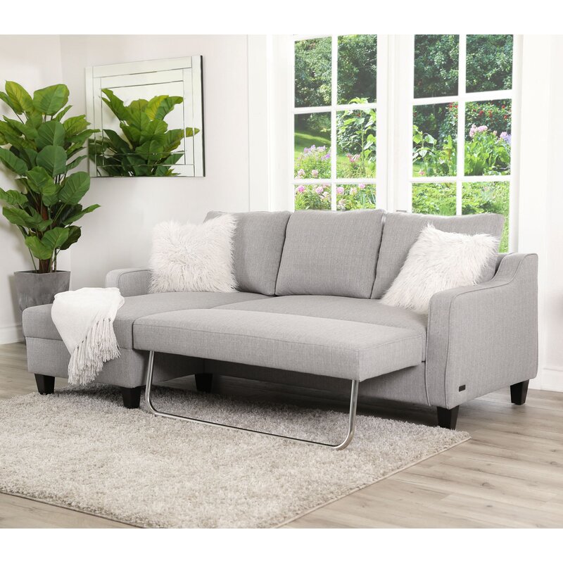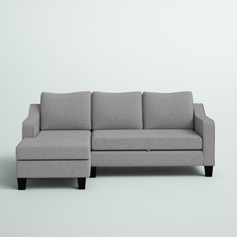 No spare space? No problem! You can still accommodate overnight guests with this versatile sleeper sectional, featuring a fold-out double sleeper. Crafted with a kiln-dried hardwood frame, this L-shaped design is filled with high-density foam and upholstered with gray polyester fabric for a neutral and approachable look. Down below, the tapered block feet sport an espresso finish for even more understated appeal. Best of all, its included pull-out bed is perfect for hosting extra overnight guests.
