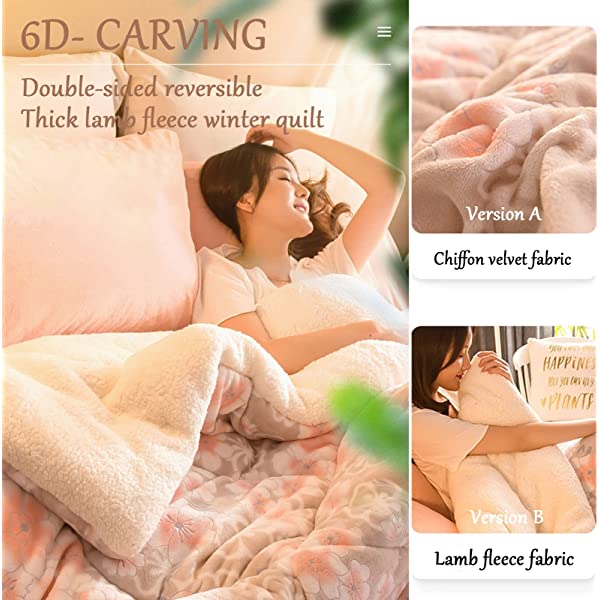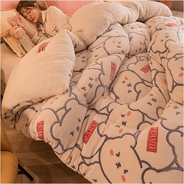 [HEAVYWEIGHT + COMFORTABLY SOFT]: The comfortable thick blanket dependably durable but softer, cozier than typical heavy blankets for winter. [VARIOUS COLORS AND SIZES]: being able to meet the needs of different people. Weaving with three-dimensional carving technology, the pattern is three-dimensional and prominent, making the bedding beautiful and generous, SIMPLE but ELEGANT. [EXQUISITE QUILTING TECHNOLOGY]: filling evenly distributed, the overall plump, difficult to harden. Made of durable material,warm and comfortable. A great accessory to keep warm during cool and cold weather. With good elasticity and breathability. [TWO DIFFERENT SIDES]: A version thick Chiffon velvet fabric - The touch is delicate and smooth, breathable, no static electricity, soft and comfortable. B version lamb cashmere fabric - High-density skin-friendly fabric, strong warmth, stylish and beautiful,suitable for bedroom. [THICK, WARM BLANKETS FOR WINTER]: Blankets queen size is made out of the softest Cashmere fiber and Polyester,our winter blankets wrap you with a cuddly warm away all winter long. Thick, warm blankets for winter, Blankets queen size is made out of the softest Cashmere fiber and Polyester,our winter blankets wrap you with a cuddly warm away all winter long. A version thick Chiffon velvet fabric - The touch is delicate and smooth, breathable, no static electricity, soft and comfortable. B version lamb cashmere fabric - High-density skin-friendly fabric, strong warmth, Just like two blankets in one, stylish and beautiful,suitable for bedroom. Features: Exquisite quilting technology, filling evenly distributed, the overall plump, difficult to harden. Made of durable material,warm and comfortable. Three-dimensional carving process weaving, beautiful and generous for bedroom. A great accessory to keep warm during cool and cold weather. The comfortable thick blanket dependably durable but softer, cozier than typical heavy blankets for winter. Specification: Fabric component: Polyester Size(Optional): 150x200cm, 180x220cm, 200x230cm Season: For All Season Included: 1x Quilt Kindly Tip: Please allow 1-3cm error due to manual measurement. Please understand that colors may exist chromatic aberration.
