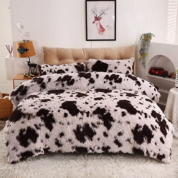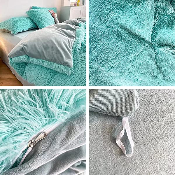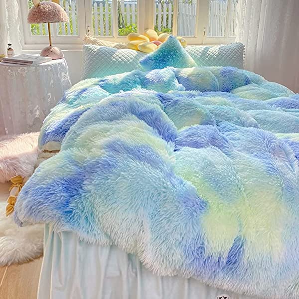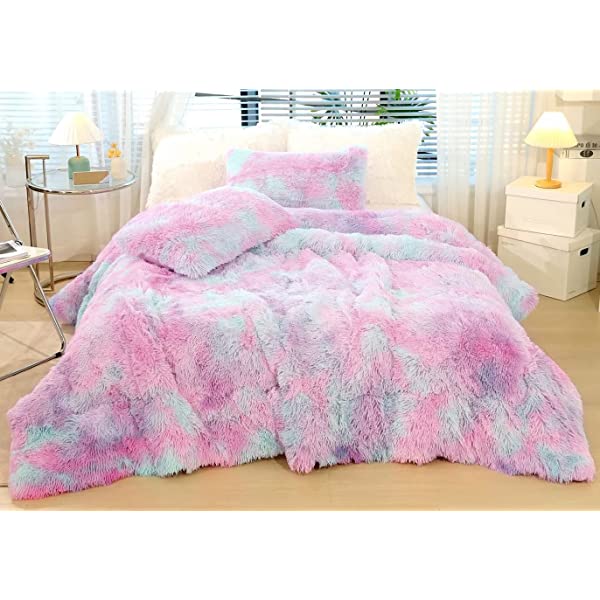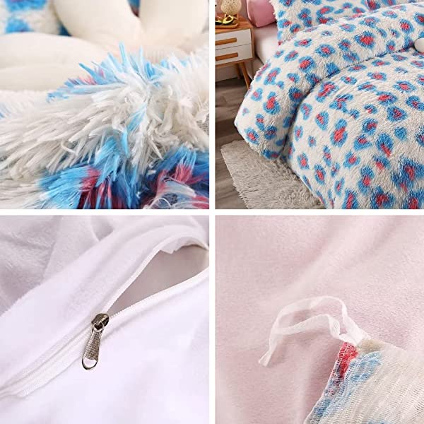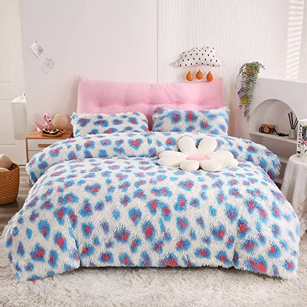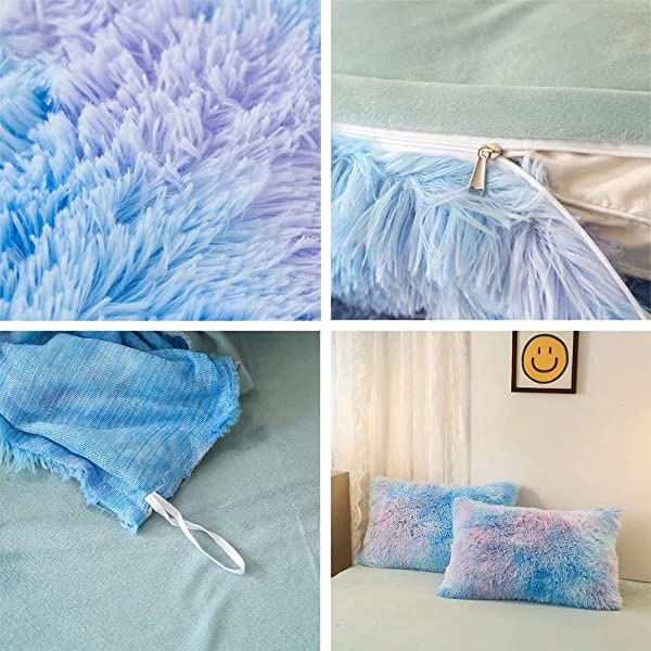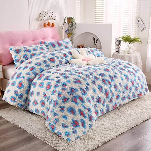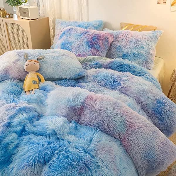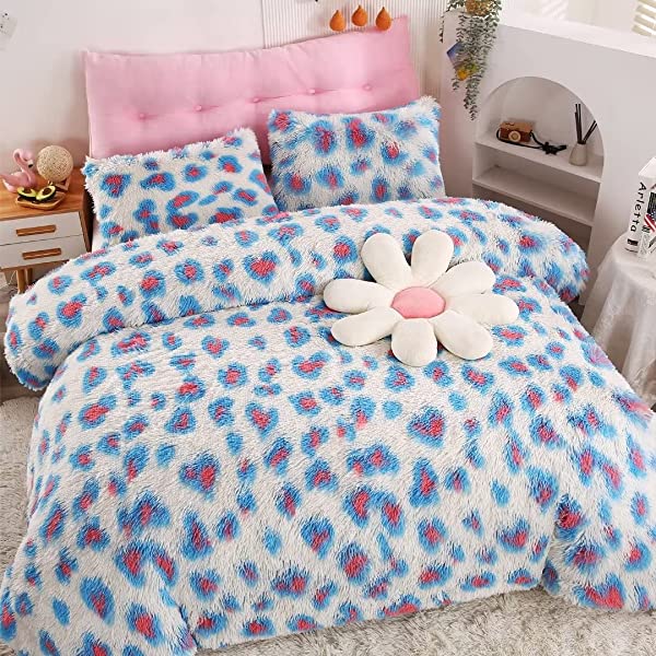 Easy Care: Turning fuzzy duvet cover inside-out, machine washable gentle cycle with washing bag separately in cold water.Please don't bleach don't Iron.Tumble dry low or dry flat. Avoid hang dry which will cause deformation.We suggest washing before first use beacuse it reduces the item's cutting debris. Design:Duvet cover has a hidden zipper closure, easy to get your duvet in and out of this cover. Inside ties are added to duvet covers at corners to fix the duvet better. Pillow covers are finished neat with envelope closures. Reactive printing has the advantage of durable, Non-fading. Size and Package (2 Pieces) Include: Twin Size Bedding Set, 1 Duvet Cover (68"x86") and 1 Pillowcase (20"x26"). COMFORTER IS NOT INCLUDED. Fluffy duvet cover and pillowcases are made of polyester microfiber plush shaggy, and the back is ultra-soft crystal velvet fabric,all of these offer the best warmth, comfortable breathability and cozy. NO comforter will be included in any of our duvet cover set. Comforters should be bought separately. The photos are for display ONLY.