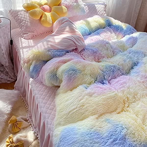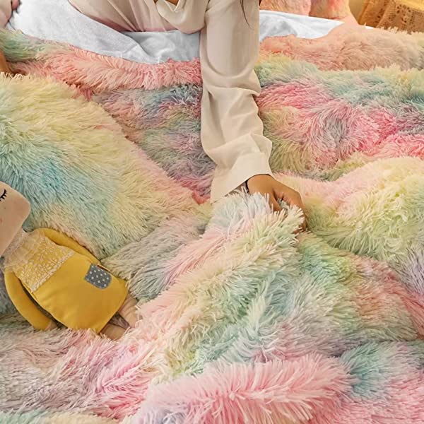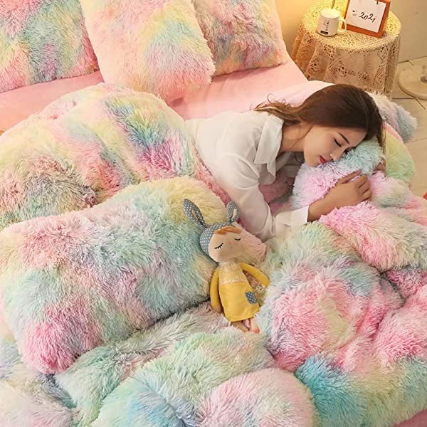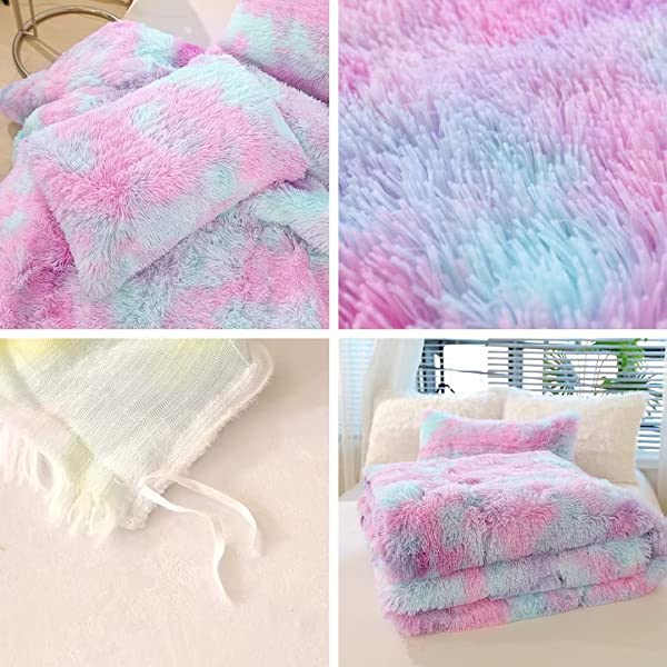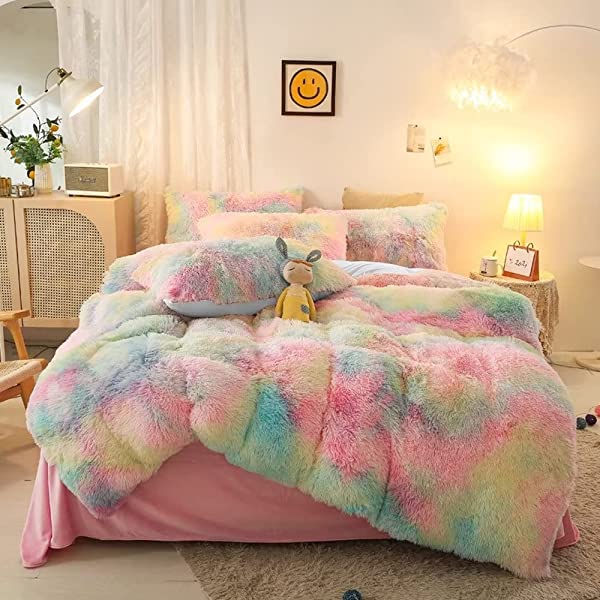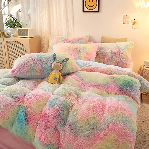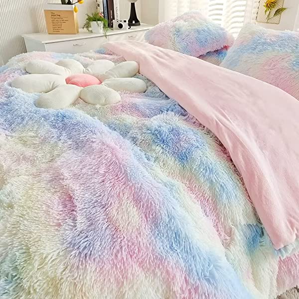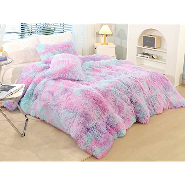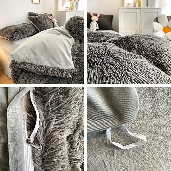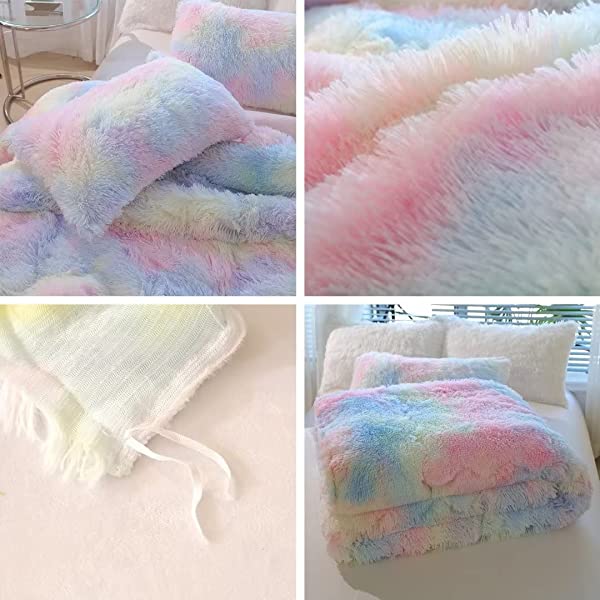 Easy Care: Turning fuzzy duvet cover inside-out, machine washable gentle cycle with washing bag separately in cold water.Please don't bleach don't Iron.Tumble dry low or dry flat. Avoid hang dry which will cause deformation.We suggest washing before first use beacuse it reduces the item's cutting debris. Design:Duvet cover has a hidden zipper closure, easy to get your duvet in and out of this cover. Inside ties are added to duvet covers at corners to fix the duvet better. Pillow covers are finished neat with envelope closures. Reactive printing has the advantage of durable, Non-fading. Size and Package (2 Pieces) Include: Twin Size Bedding Set, 1 Duvet Cover (68"x86") and 1 Pillowcase (20"x26"). COMFORTER IS NOT INCLUDED. Fluffy duvet cover and pillowcases are made of polyester microfiber plush shaggy, and the back is ultra-soft crystal velvet fabric,all of these offer the best warmth, comfortable breathability and cozy. NO comforter will be included in any of our duvet cover set. Comforters should be bought separately. The photos are for display ONLY.